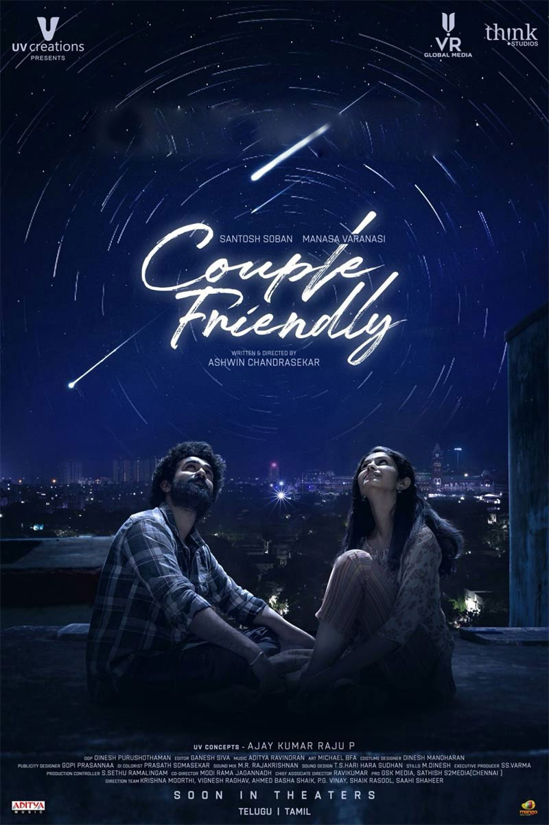 Couple Friendly Movie is directed by the Ashwin Chandrasekar and produced by Ajay Kumar Raju.P under the banner UV Concepts, the movie cast includes Santosh Soban, Manasa Varanasi. Aditya Ravindran composed the music for Couple Friendly.